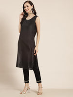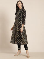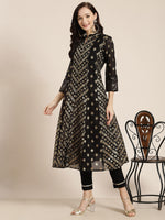 Juniper Women's Juniper Women`s Black Chanderi Silk Printed Arkali Kurta
