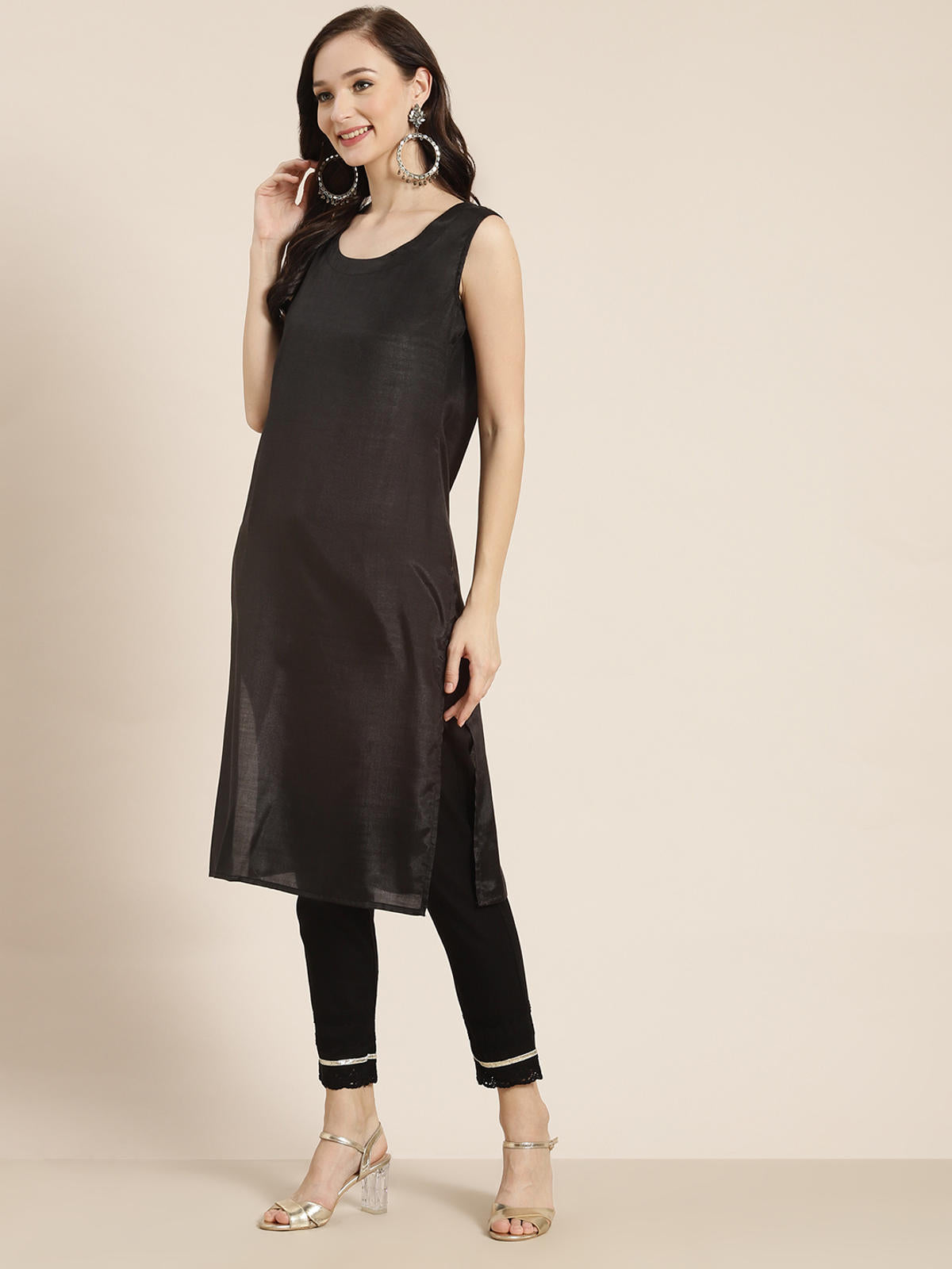 Juniper Women's Juniper Women`s Black Chanderi Silk Printed Arkali Kurta Top Type: Kurta Top Pattern: Printed Print/Pattern Type/Trend: Ethnic M...