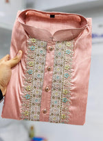 Prazu Fashion Baby Pink Shiny Silk Fabulous Coding Work Kurta With Pajama - M(38)