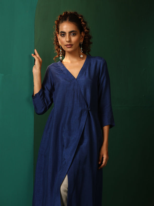 trueBrowns Blue Silk Angrakha Kurta Pant SetDescription Silk Blend Angrakha Kurta with button detailing. Paired with elasticated waist pant.  The p...