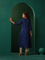 trueBrowns Blue Silk Angrakha Kurta Pant Set - XS