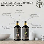 Ingredients: Gray Hair Oil Consist Of Sweet Almond Oil, Apricot Oil, Moroccan Argan Oil, Jojoba Oil, Grapeseed Oil, Fenugreek, Rosemarry, Lavender, Blackseed, Hibiscus, Ashwagandha, Vitamin E.Grey Hair Shampoo: Rosemary Water, Jojoba Oil, Castor Oil, Water, Ritha, Olive Oil, Coconut Oil, Natural Glycerine, Amla Extract, Gingko Biloba Extract, Brahmi Extract, Thyme Extract