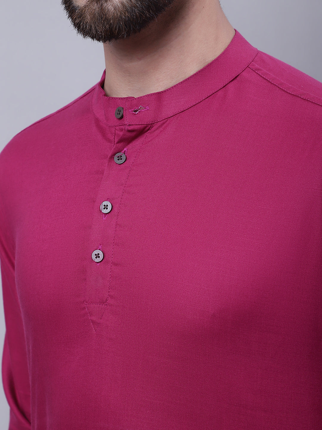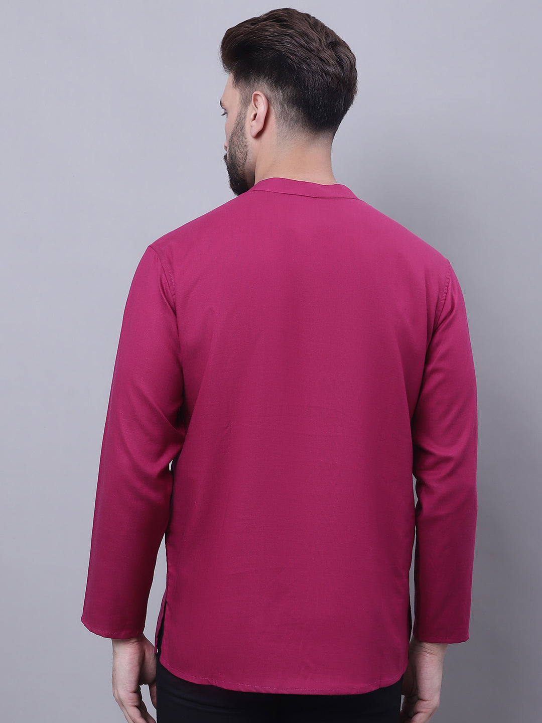 Even Apparels Wine Pure Cotton Short Kurta With Band Collar