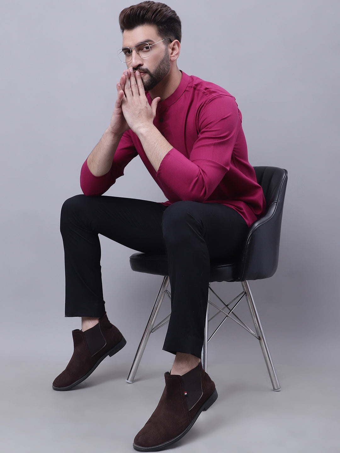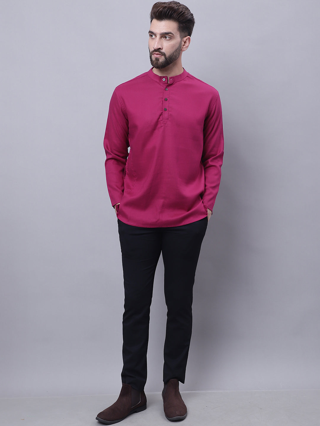 Even Apparels Wine Pure Cotton Short Kurta With Band Collar - Distacart