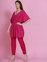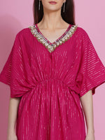 Women Republic Pink Lurex Cotton Kaftan Style Kurta With Pants