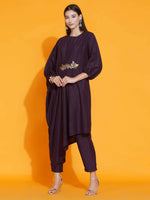Women Republic Purple Fusion Style Kurta With Hand Embellishment And Pants