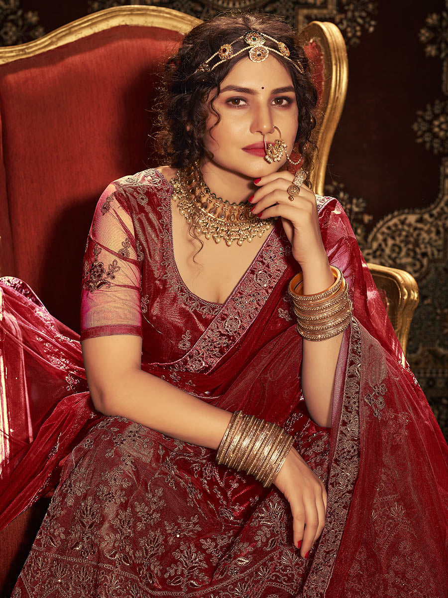 Myra Maroon Ocean Heavy Embroidered Net Lehenga - Distacart
