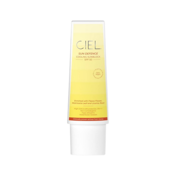 CIEL Cooling Sunblock SPF 50 provides superior broad-spectrum protection against sunburn, sun-tan, and premature skin ageing. This formulation is enriched with powerful antioxidants that protect skin from free-radical damage and is oil and fragrance-free. It is infused with anti-inflammatories that instantly soothe skin, making it suitable for sensitive skin.