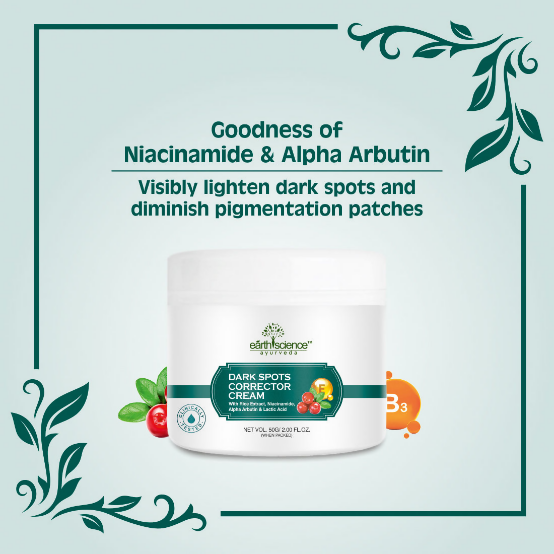 Earth Science Ayurveda Dark Spot Corrector Cream with Rice Extract and Niacinamide appears to be formulated to target dark spots and uneven skin tone. Let's take a closer look at the key ingredients: