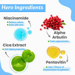 • Experience the power of Niacinamide with the added benefits of Alpha Arbutin, Cica, and Pentavitin in this all-in-one serum designed to transform your skin.