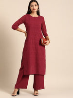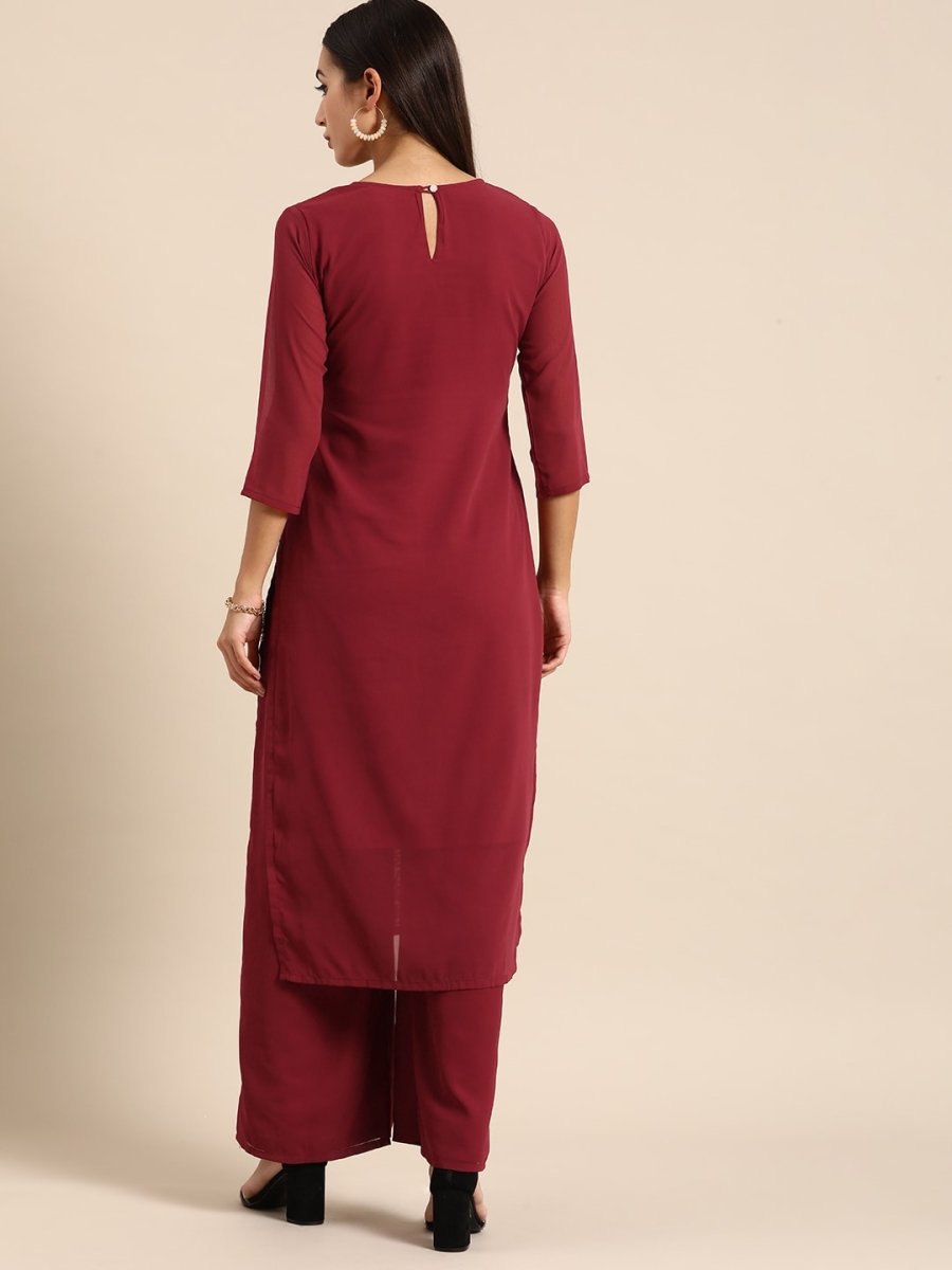 Maroon embroidered Kurta with Palazzos