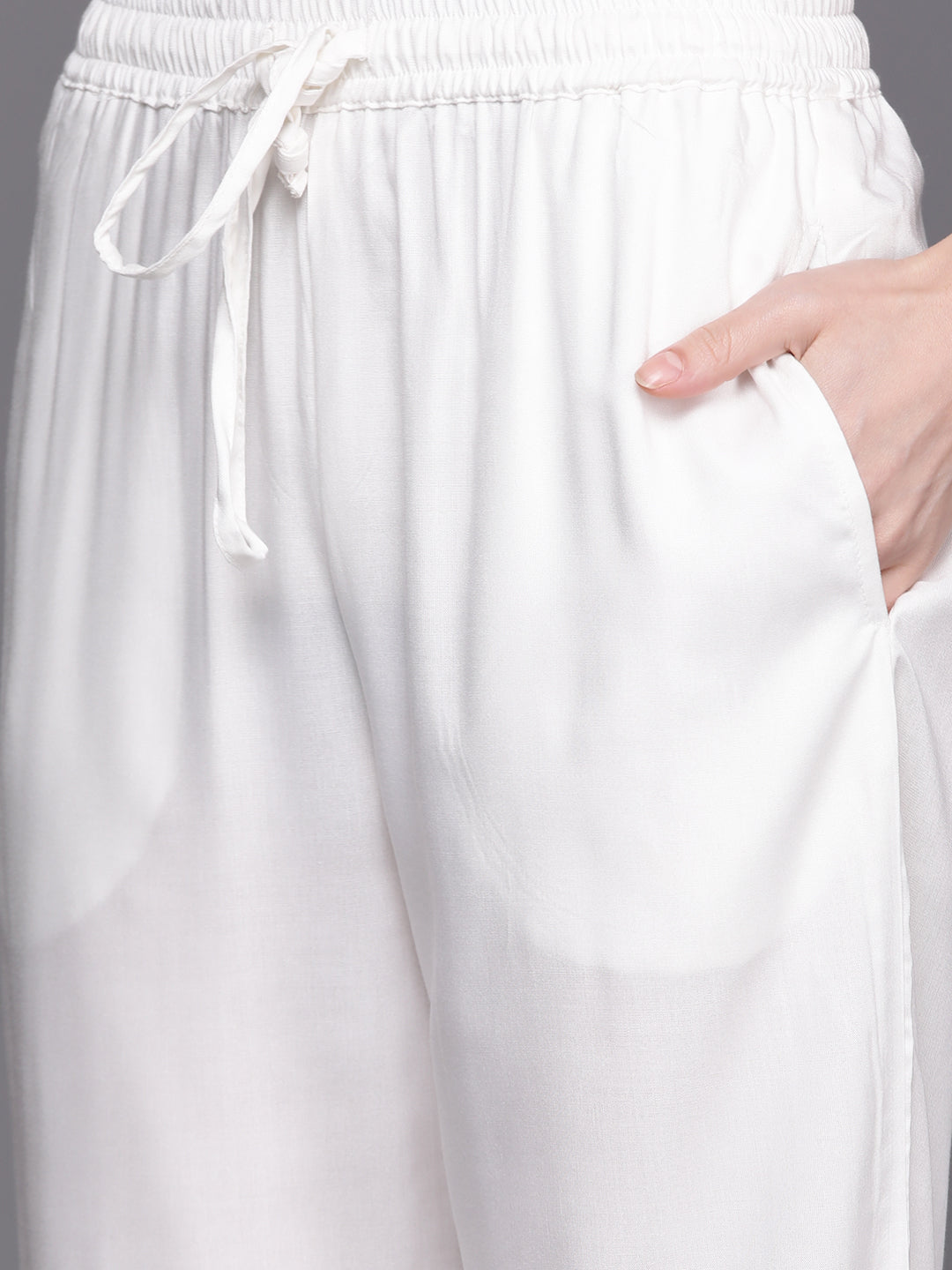 White Solid crop palazzos, has elasticated waistband, drawstring closure, 2 pockets