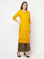Aniyah Rayon Screen Print Mustard Straight Kurta