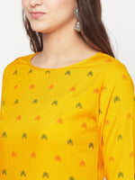 Aniyah Rayon Screen Print Mustard Straight Kurta - S