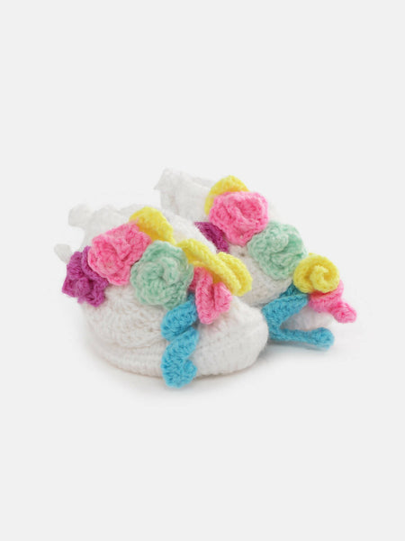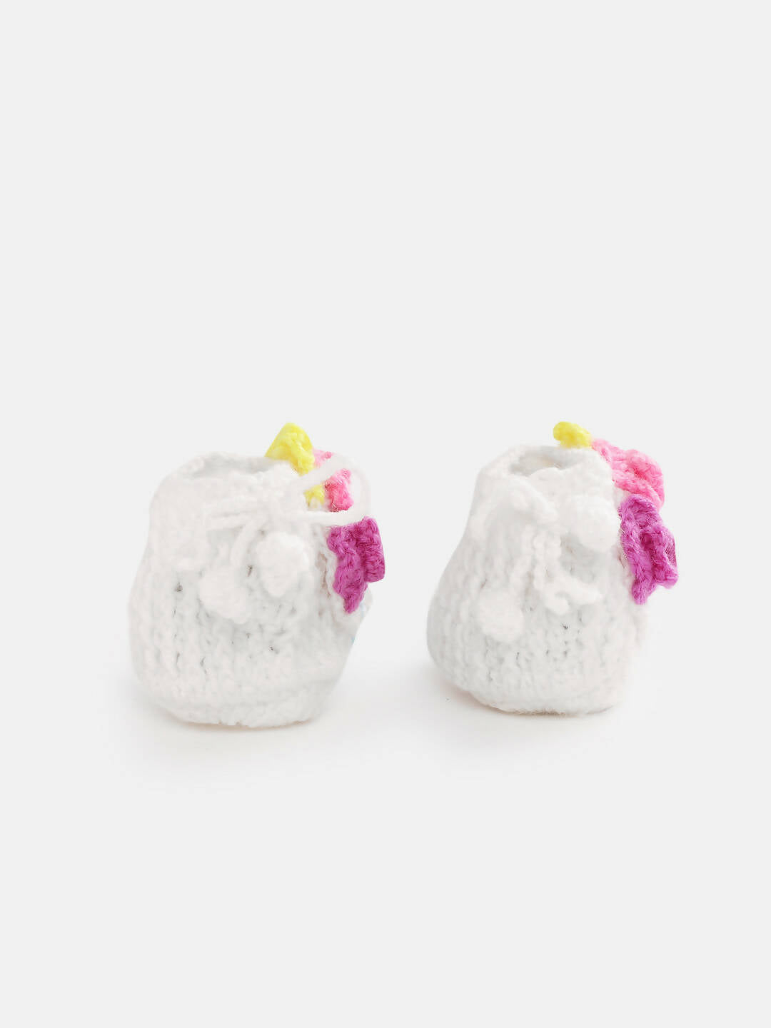 Chutput Kids Woollen Hand Knitted Flower Detailed Booties - White - 0-3 M