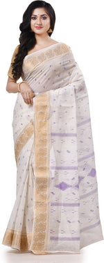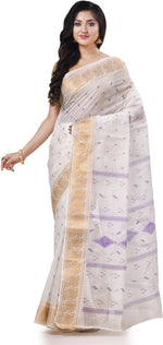 Desh Bidesh Woven Handloom Pure Cotton Saree (White) - Distacart