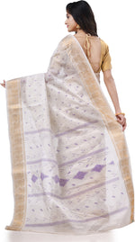 Desh Bidesh Woven Handloom Pure Cotton Saree (White)