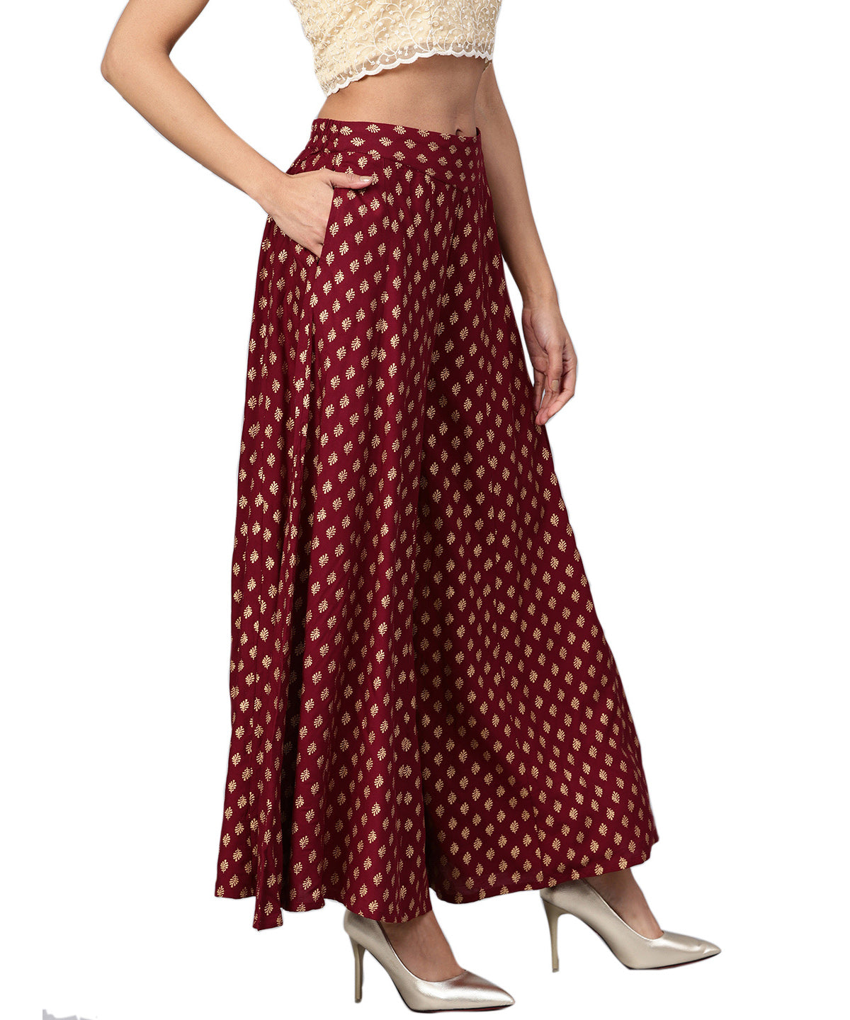 Juniper Women Maroon Rayon Printed Flared Palazzo - Distacart