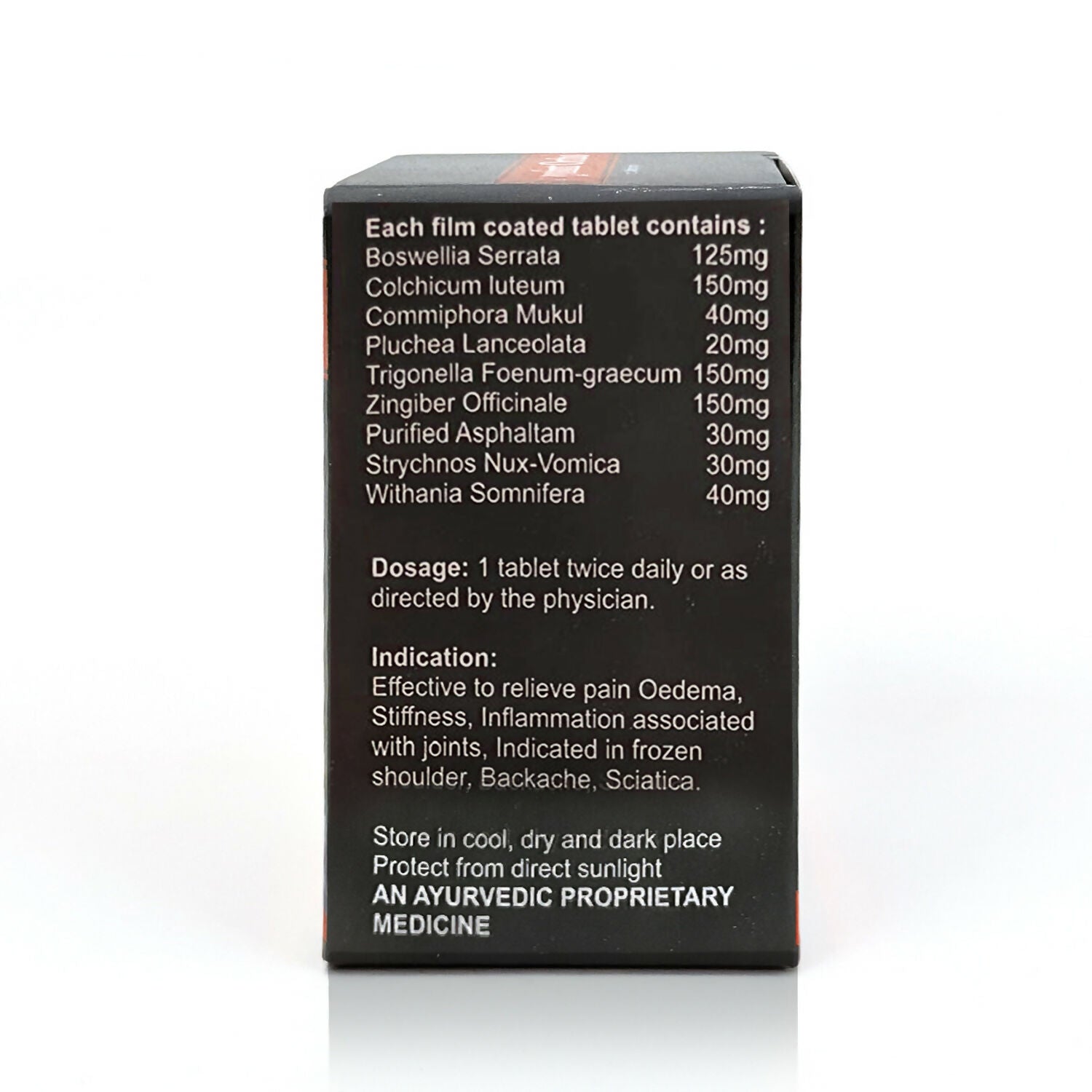The formulation contains nutrients and herbal extracts commonly found in joint health supplements.