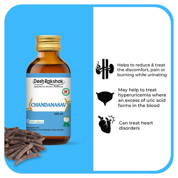 Desh Rakshak Chandanasav Key Benefits:Helps to reduce and treat the discomfort, pain or burning while urinatingMay help to treat hyperuricemia wher...