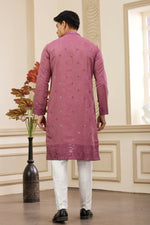 Raivat Ethnic Men's Art Silk Thread Work Kurta Pyjama In Mauve Colour - 34