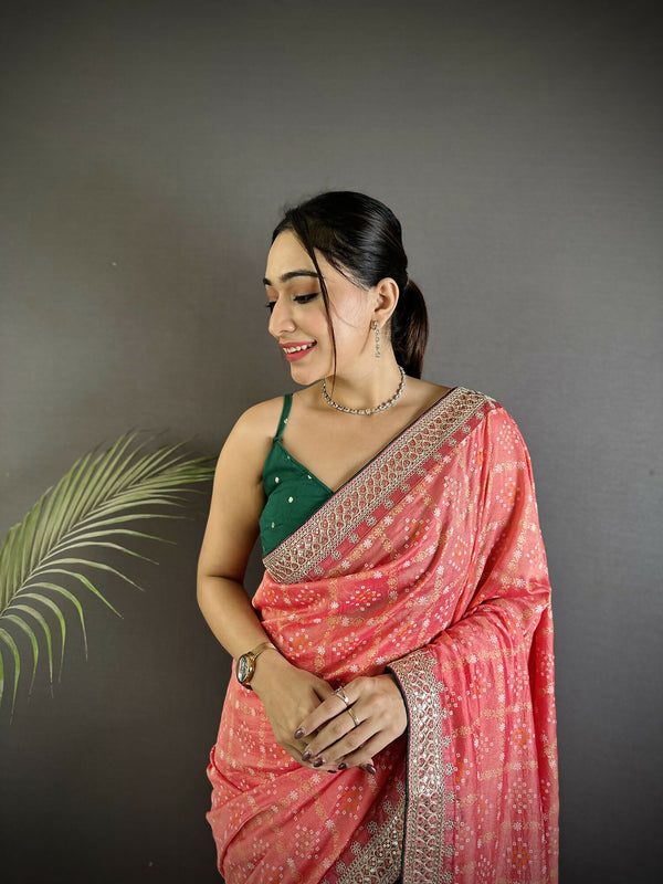 Joban Fashion Baby Pink Bandhej Bandhani Vichitra Silk Bandhani Prints Saree