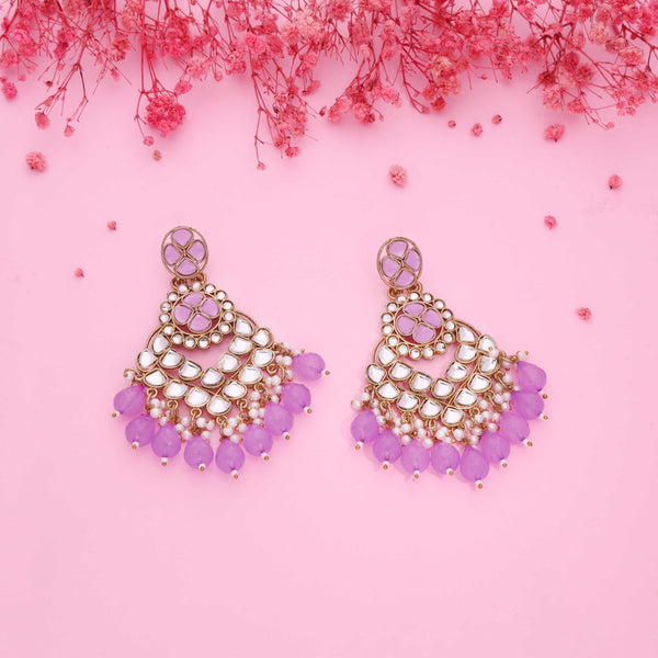 Tehzeeb Creations Gold Polish Kundan Purple Colour Earrings