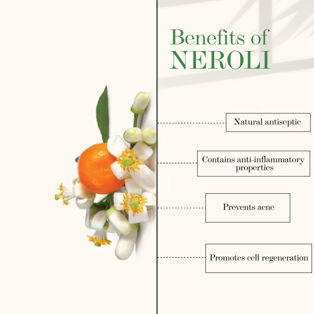 Why choose Good Vibes Neroli Face Mist: The sweet, orange-blossom aroma of Neroli calms and soothes for clear skin! Reduces the occurrence of clogged pores for a smoother and softer skin! Heals irritated and inflamed skin gently. Suitable for all skin types, this mist transforms dull and tired skin into a glowing, healthy one!