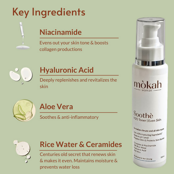 Mokah Woman Soothe Hydrating TonerAbout the Products:Mokah Woman Soothe is a hydrating and calming toner designed to achieve clean, pH-balanced ski...