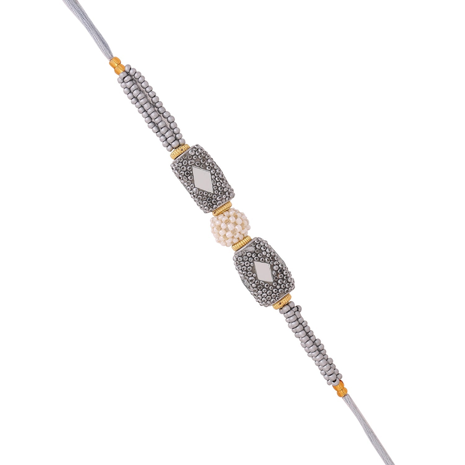 trueBrowns X Voylla Silver Beaded Rakhi With Roli Chaawal Pack - Freesize