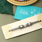 • May the bond between you and your brother continue to shine brighter as you tie this exquisite designer pearl rakhi around your brother's wrist. This magnificent pearl rakhi embellished with silver beads is sure to add grace to your Raksha Bandhan celebrations.
