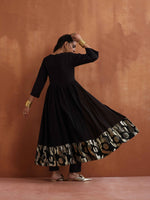 trueBrowns Black Metallic Flared Anarkali Kurta Set - 2XS