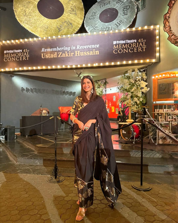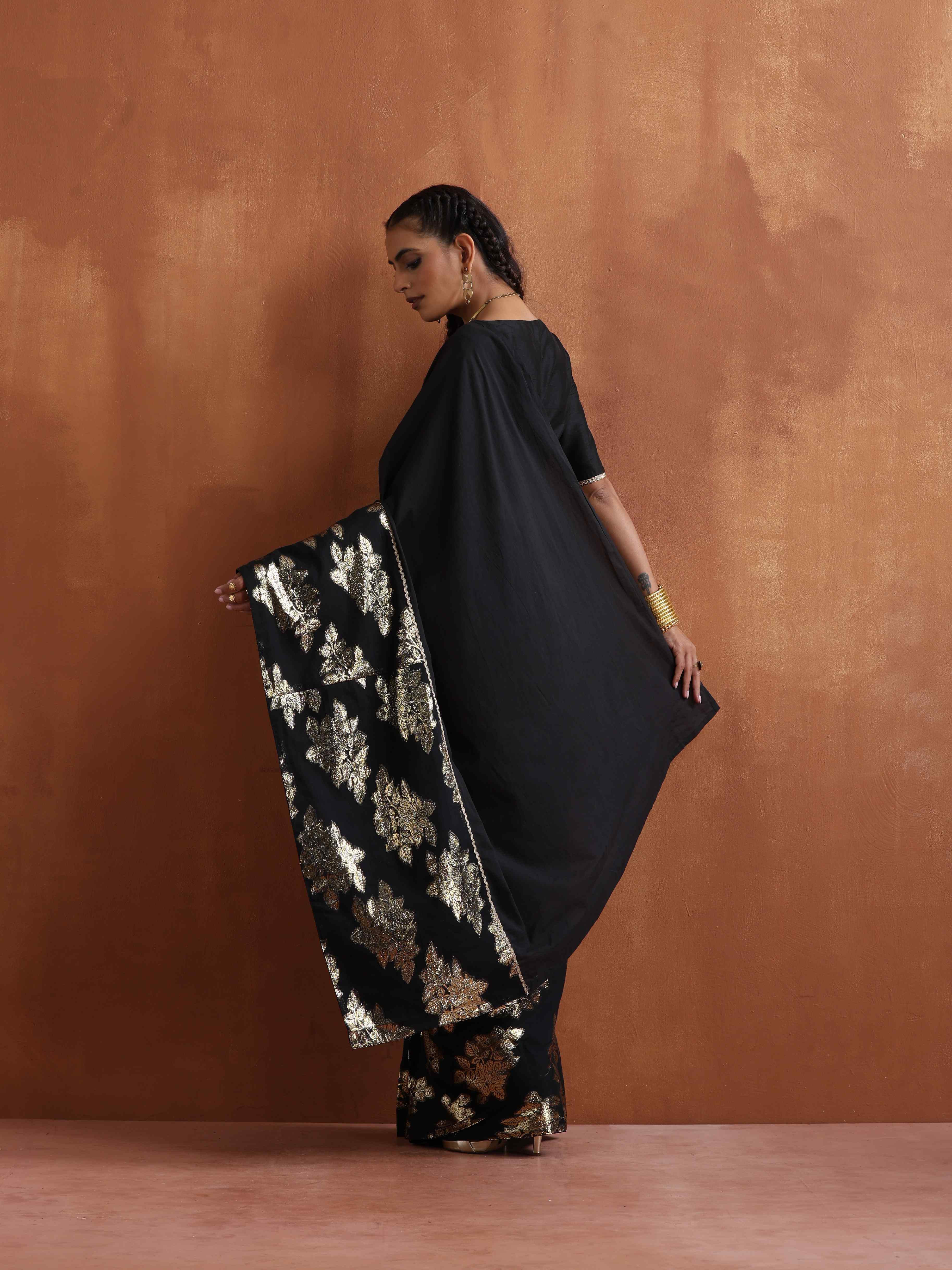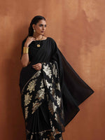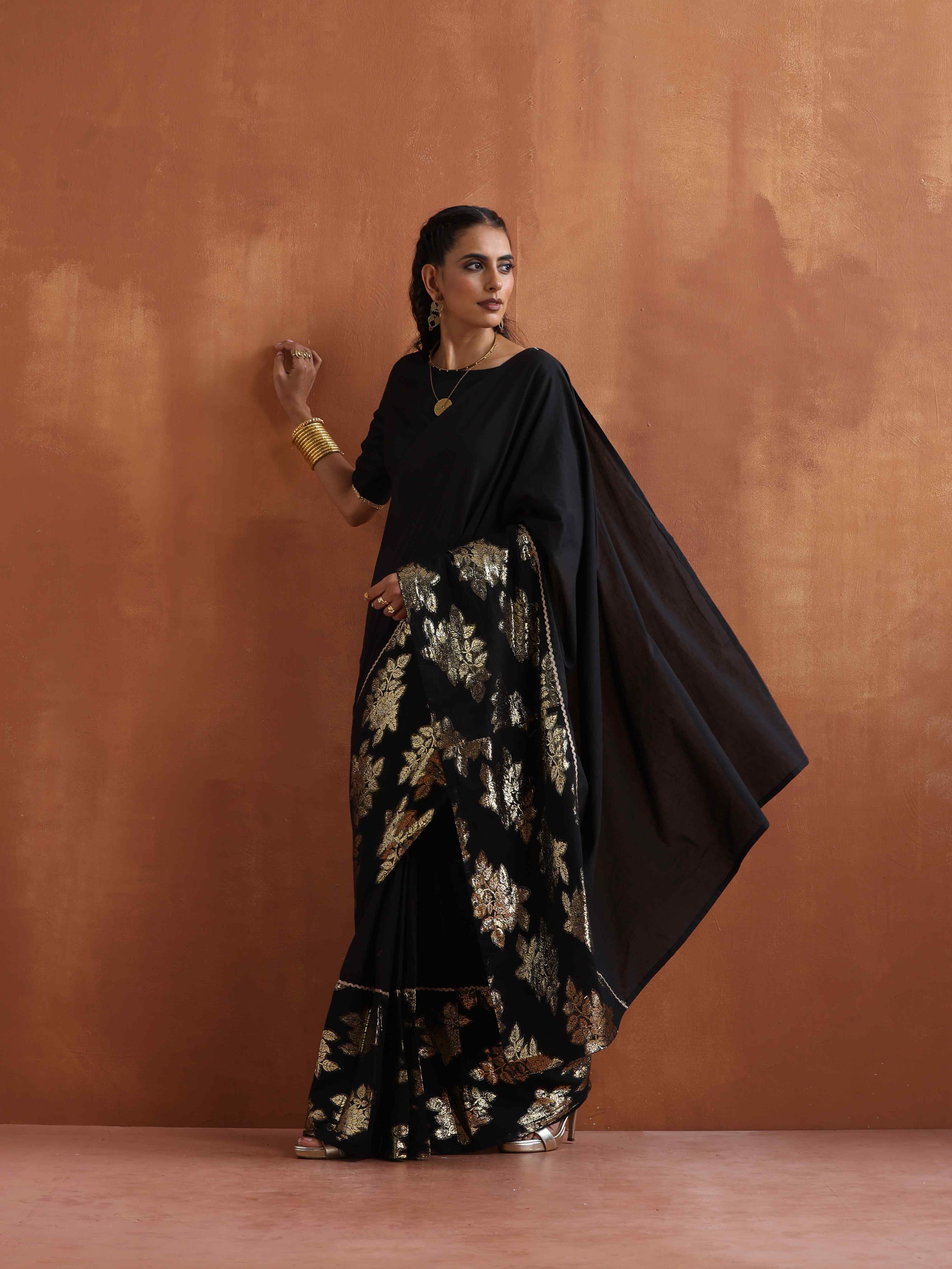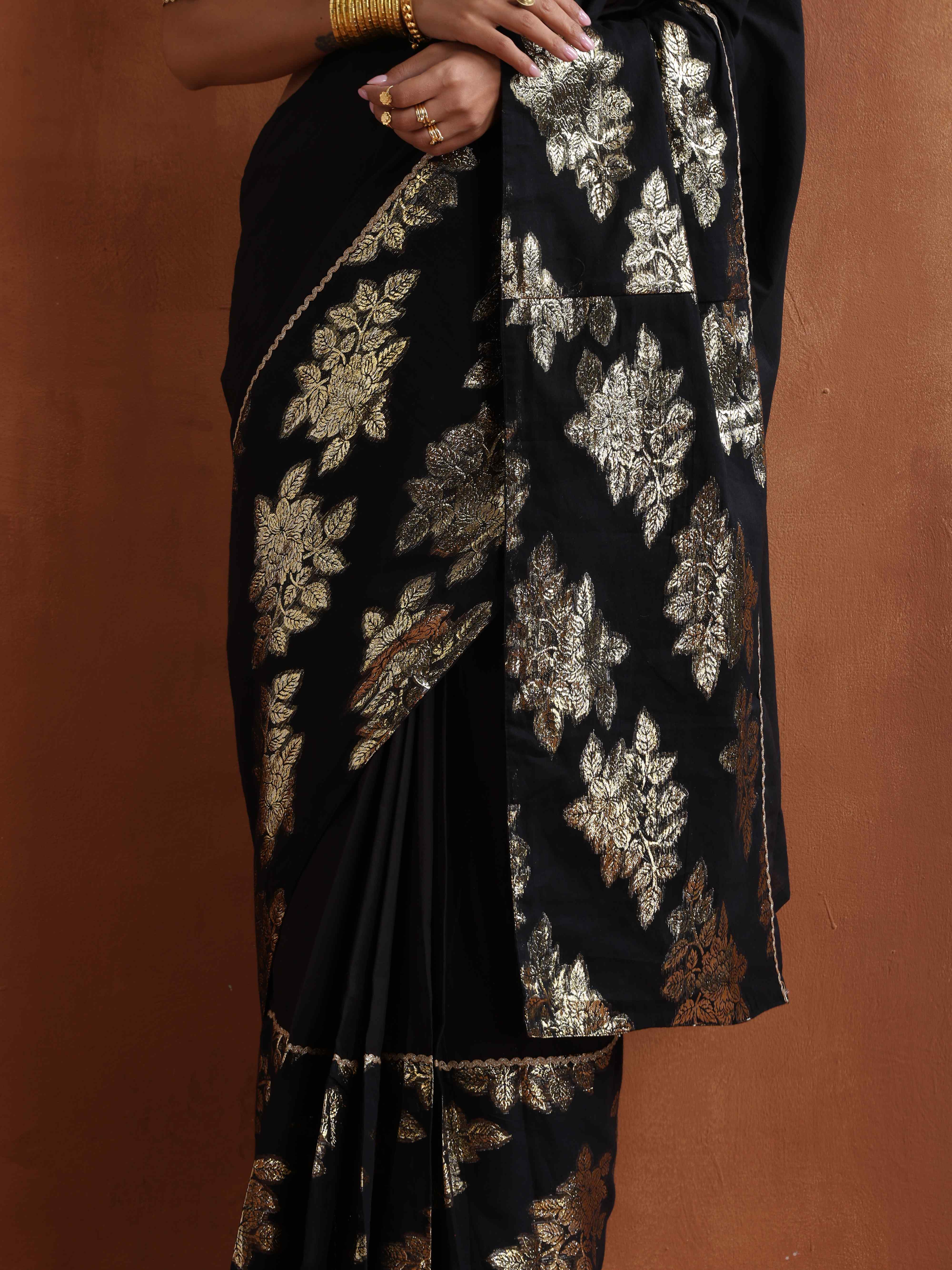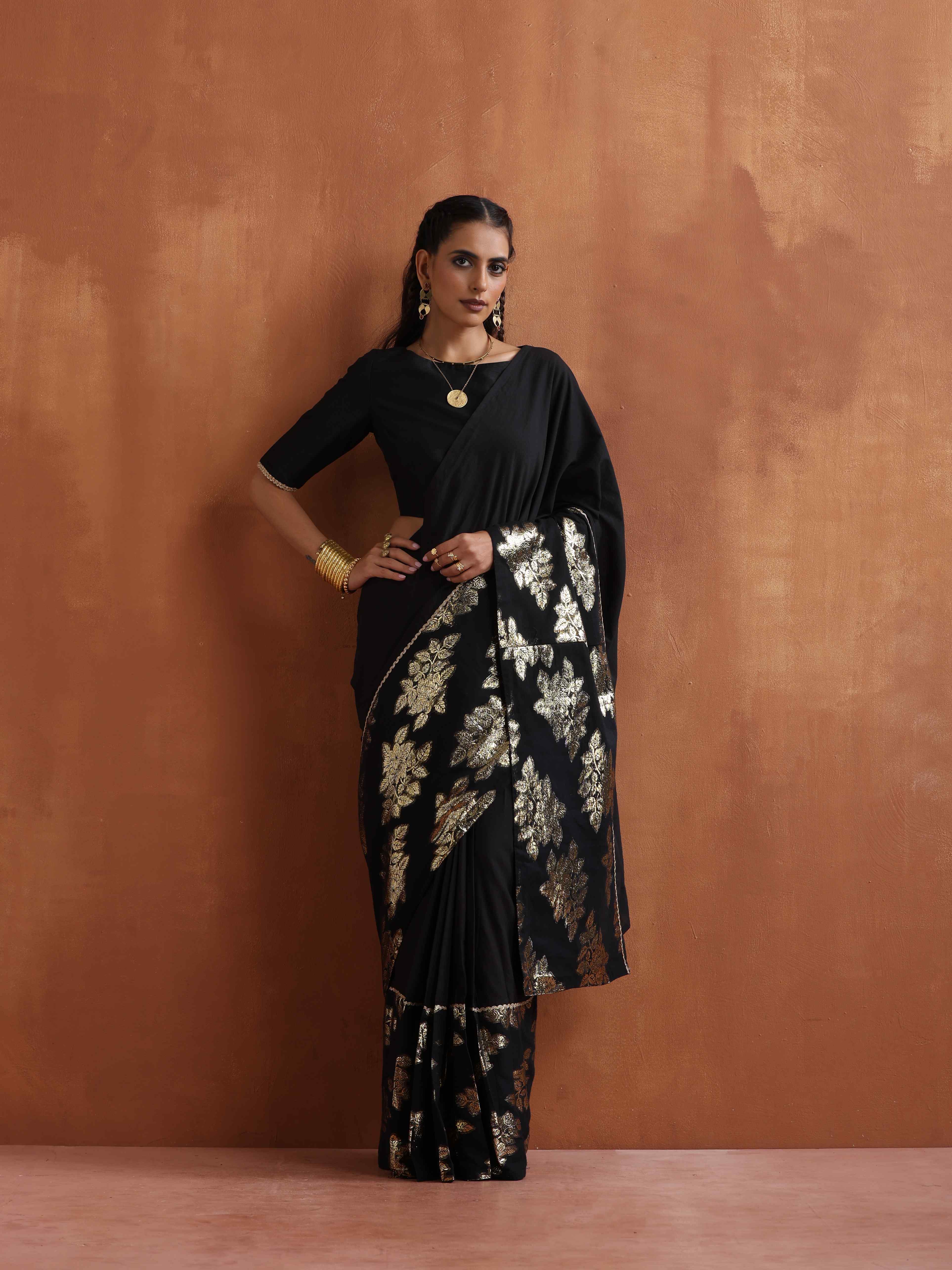 trueBrowns Black Metallic Ready To Wear Saree - 2XS