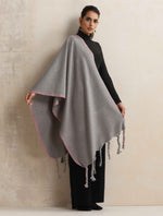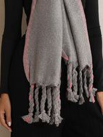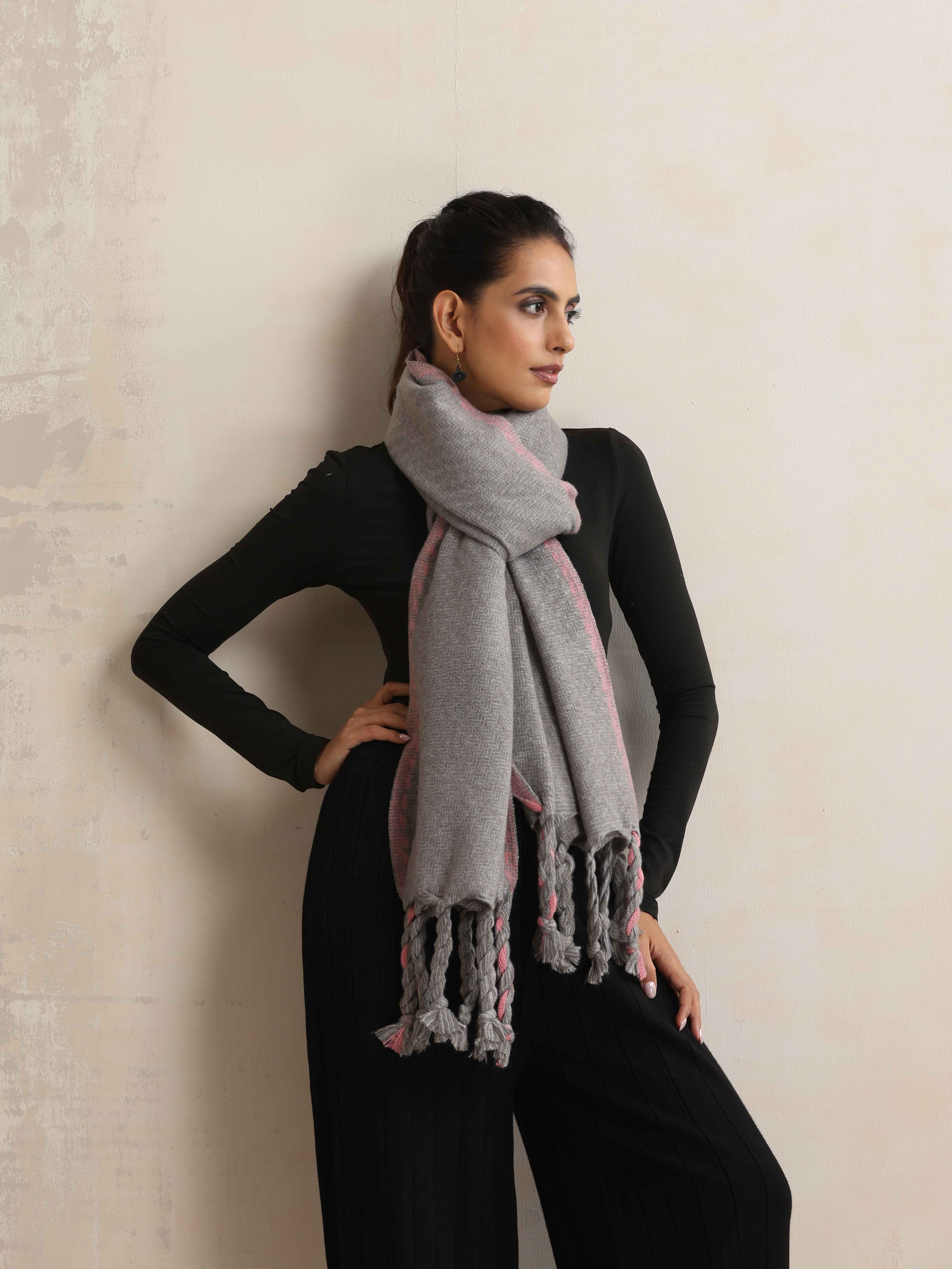 trueBrowns Grey Tassel Woollen Stole - Freesize