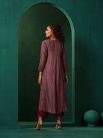 trueBrowns Light Mauve Silk Front Pleat Kurta Pant SetDescription Silk blend Kurta with front pleat and V-neck in fit and flare fit. Paired with el...