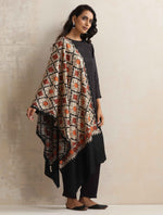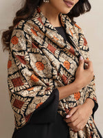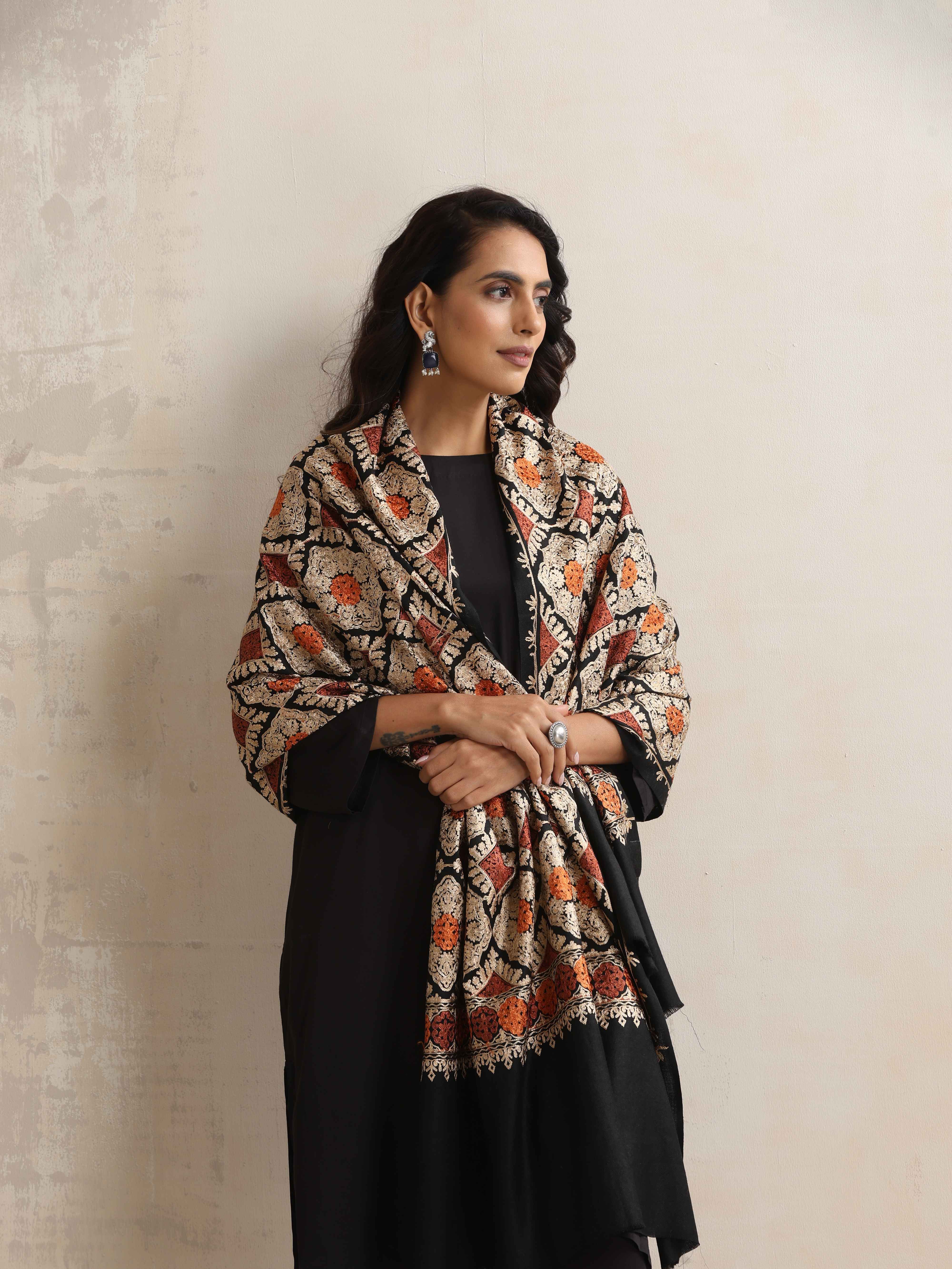 trueBrowns Black Embroidered Woollen Stole - Freesize