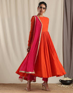 trueBrowns Orange Crinkle Anarkali Kurta Pant Dupatta Set
