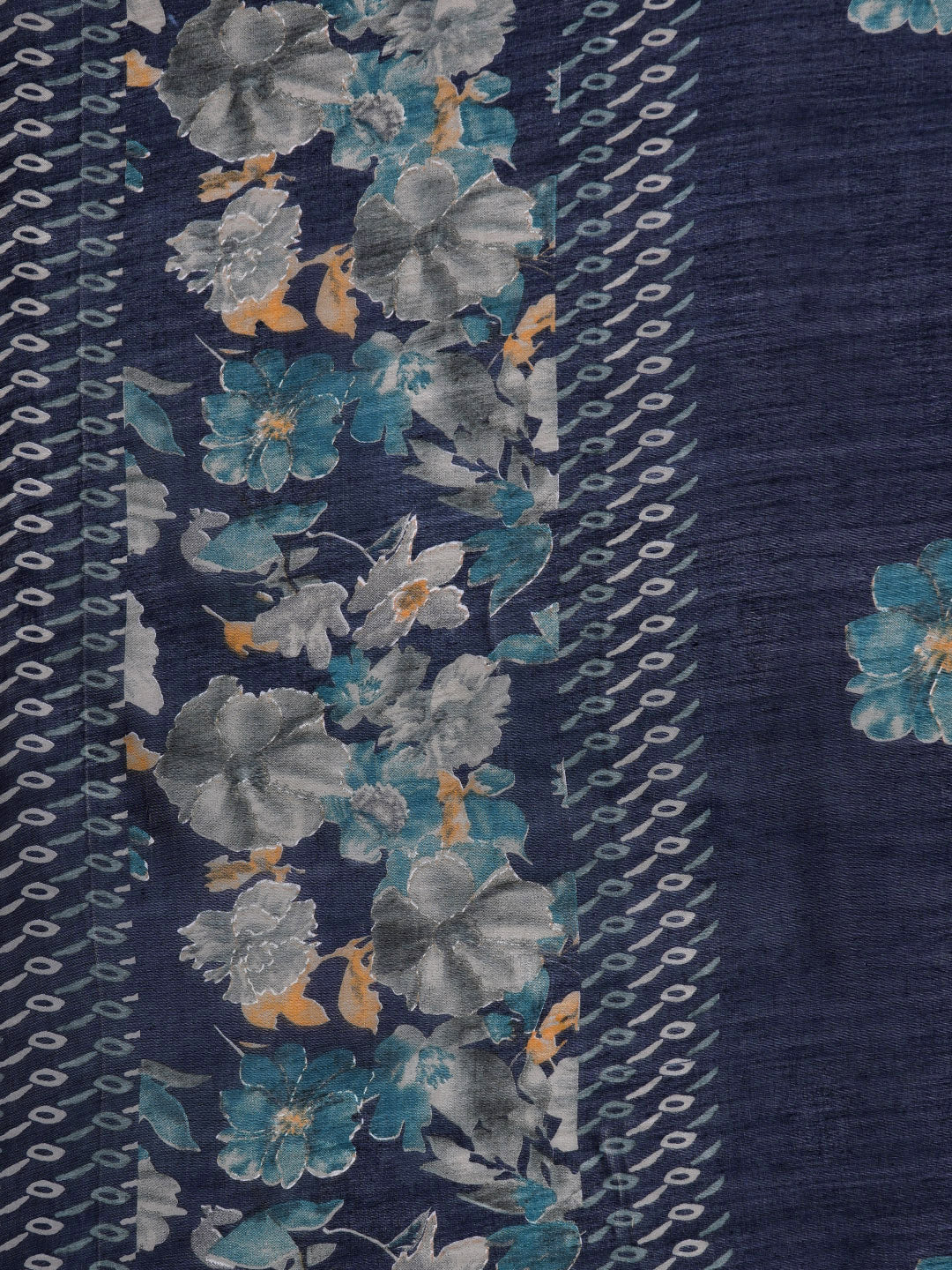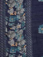 Blue Floral Printed Zari Embroidered Scalloped V- Neck, Three Quarter Sleeves Straight Kurta With Side Slit Paired With Printed Tonal Bottom And Dupatta
