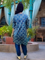 Blue Floral Printed Mirror Work Yoke Embroidered Tassel Detail A-Line Kurta Paired With Solid Mirror Work Hem Embroidered Afghan Bottom And With Dupatta