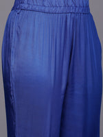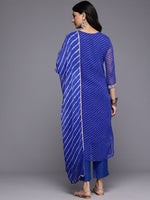 Navy Blue Georgette Bandhani Print V Neck Zari Embroidered And Sequins Embellished Straight Kurta, Three Quarter Sleeve With Side Slit And Paired With Tonal Bottom And Bandhani Print Dupatta