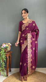 Vastranavya Purple Vichitra Silk Zari with Swarovski Work Ready to Wear SareePresenting you most trending & beautiful Golden & Copper Zari ...