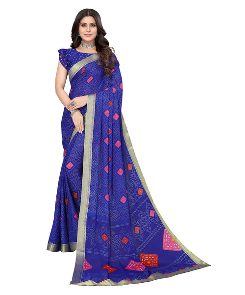 Vamika Blue Georgette Printed With Lace Saree - Distacart