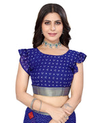Vamika Blue Georgette Printed With Lace Saree