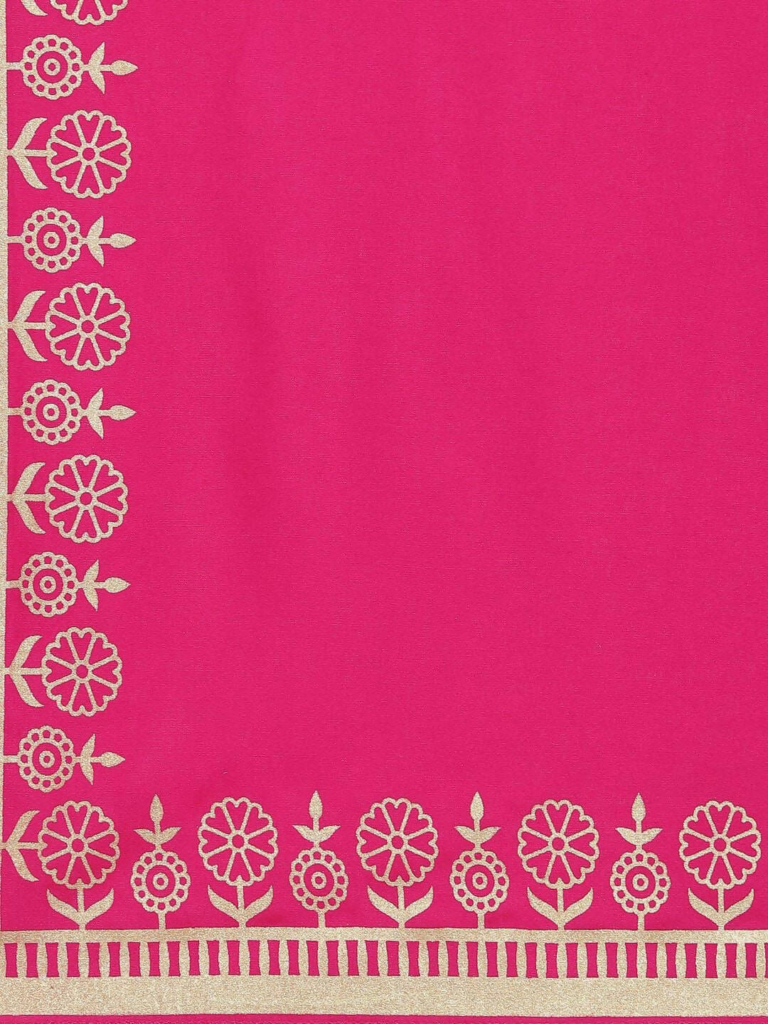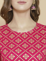 Vamika Foil Print Cotton Pink Party Wear/Casual Wear Kurta Set/Suit