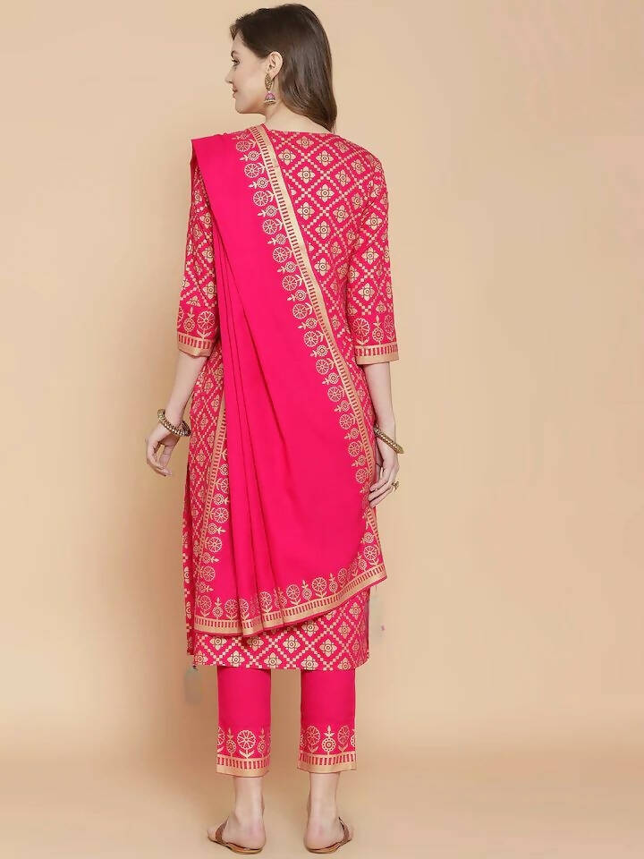 Vamika Foil Print Cotton Pink Party Wear/Casual Wear Kurta Set/Suit Work: Foil Print Fabric Top: Cotton Fabric Bottom: Cotton Fabric Dupatta: C...