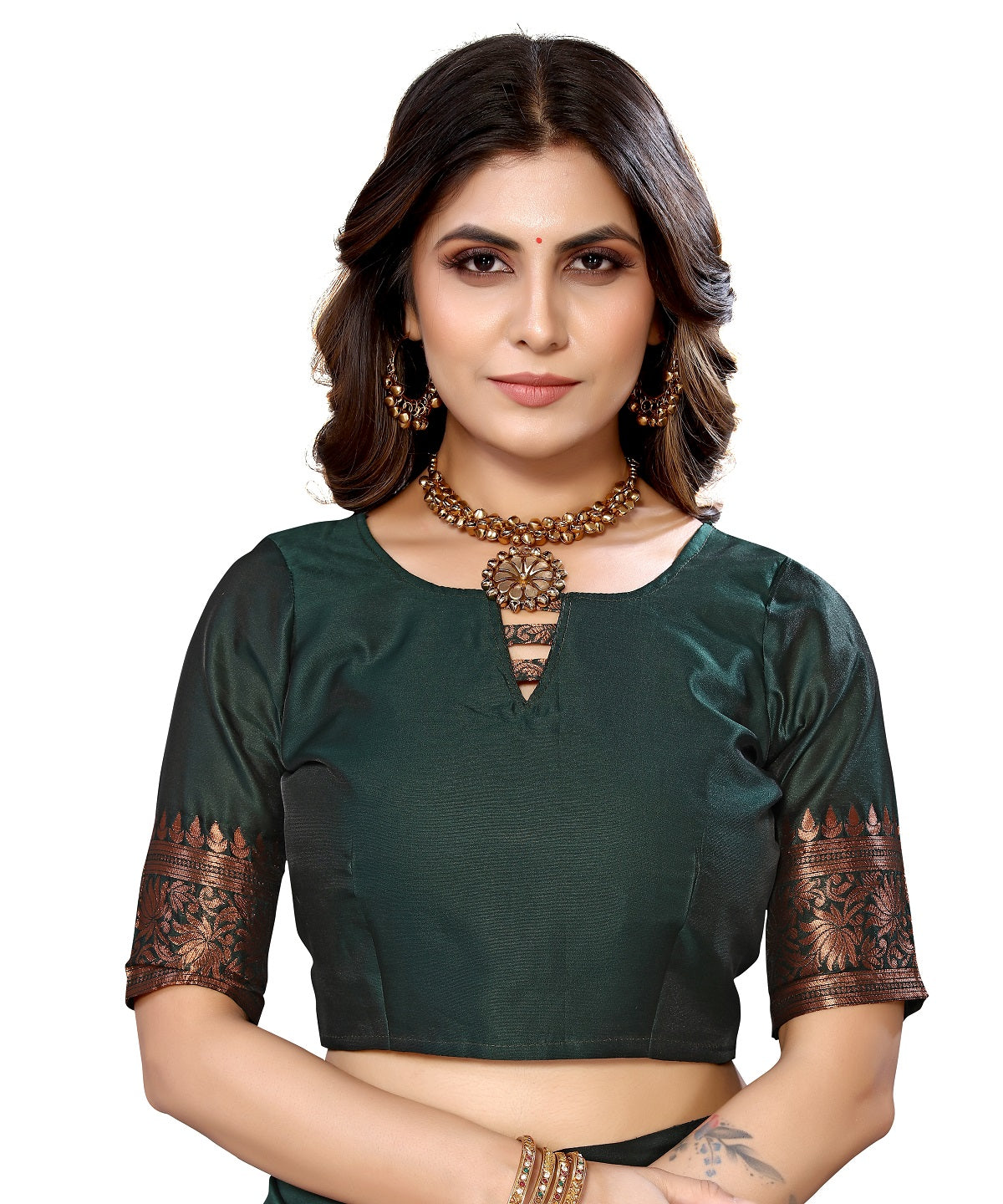 Vamika Green Banarasi Jacquard Weaving SareeAbout the Product: Work: Weaving Base Fabric: Banarasi Jacquard Fabric Saree: Banarasi Jacquard Fab...