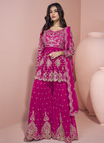 Vegaa Fashion Pink Georgette Embroidereddesigner Sharara Suit - M-(38)