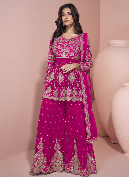 Vegaa Fashion Pink Georgette Embroidered designer Sharara Suit