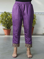 Vellora Royal Purple Silk Blend Embroidered Casual Suit for Women