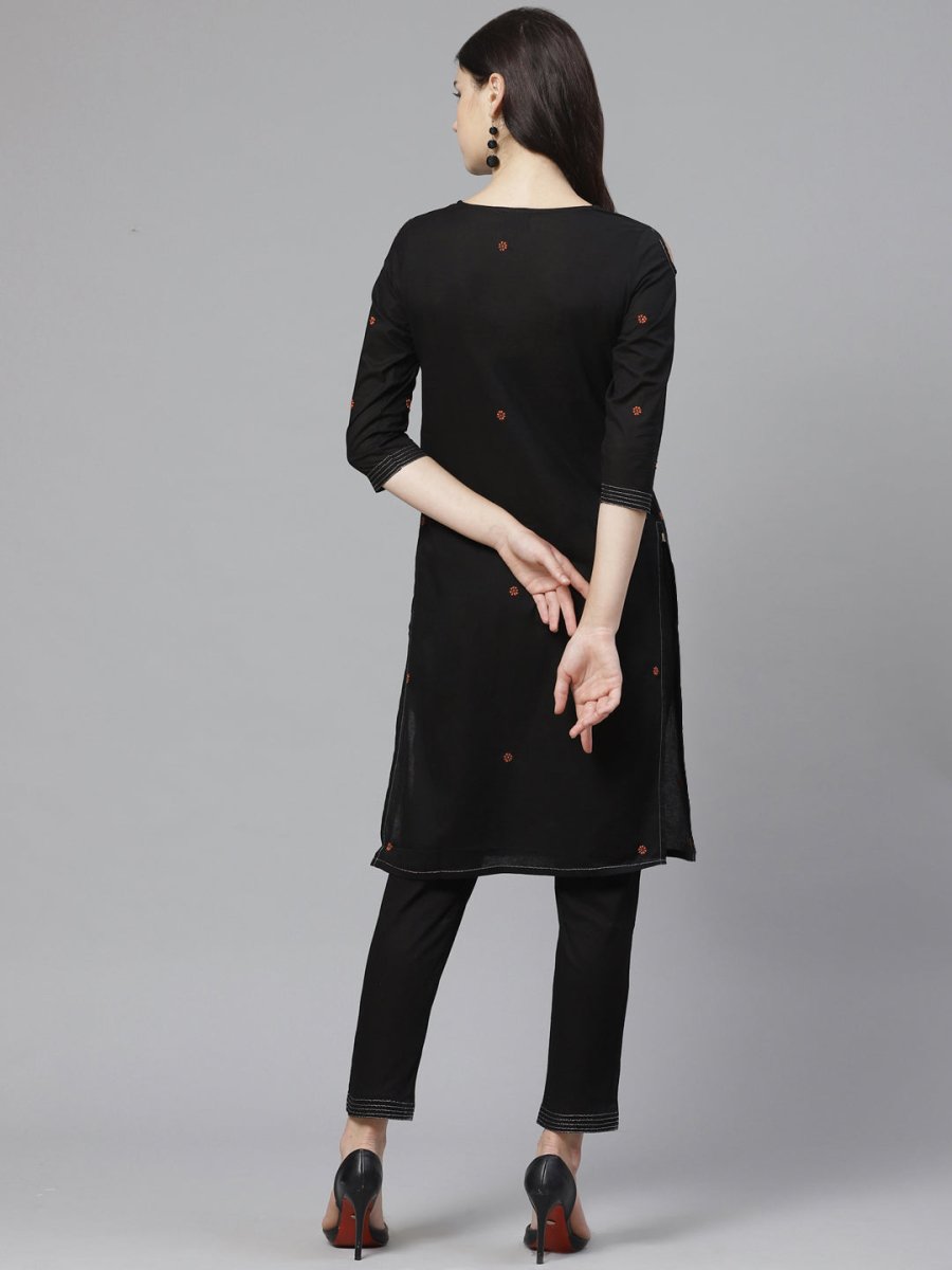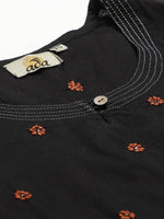 ADA Women Black & Rust Orange Chikankari Embroidered Sustainable Handloom Kurta with Trousers Product Details Black and rust orange chikanka...